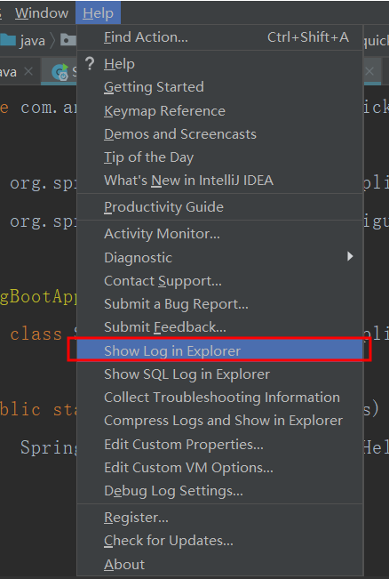 最重要的是学会了怎样在Idea出现错误时,发现导致错误的具体原因,通过 Helper->Show Log in Explorer,查看Idea的日志,就可以发现具体的原因了:具体如下