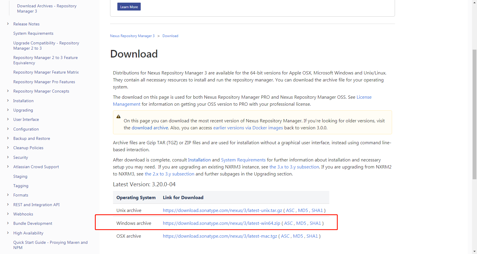 https://help.sonatype.com/repomanager3/download 我这里下载的是windows版的