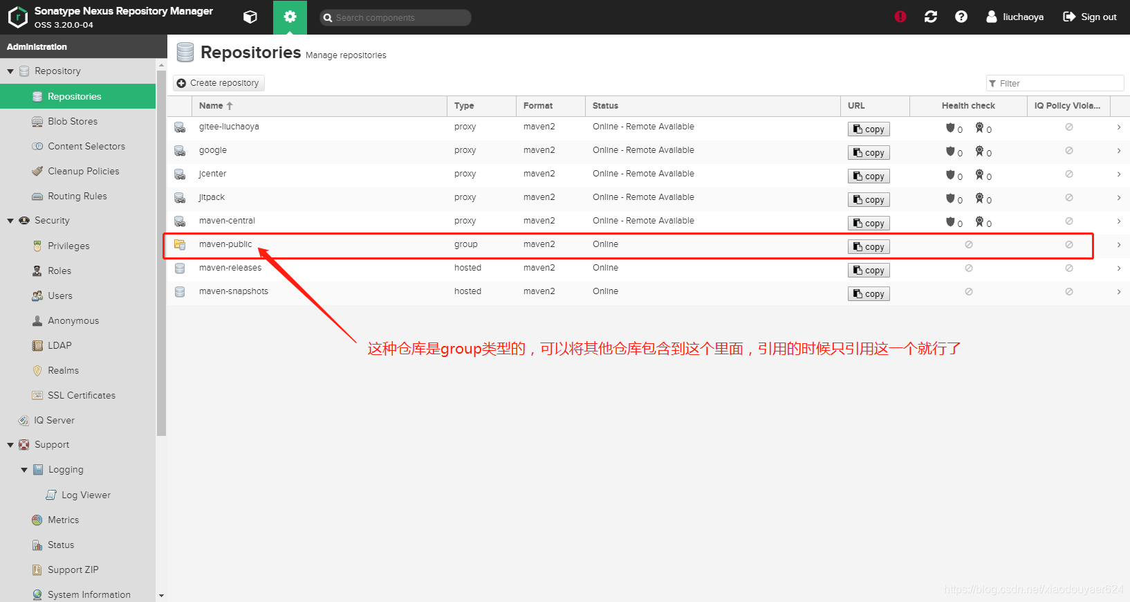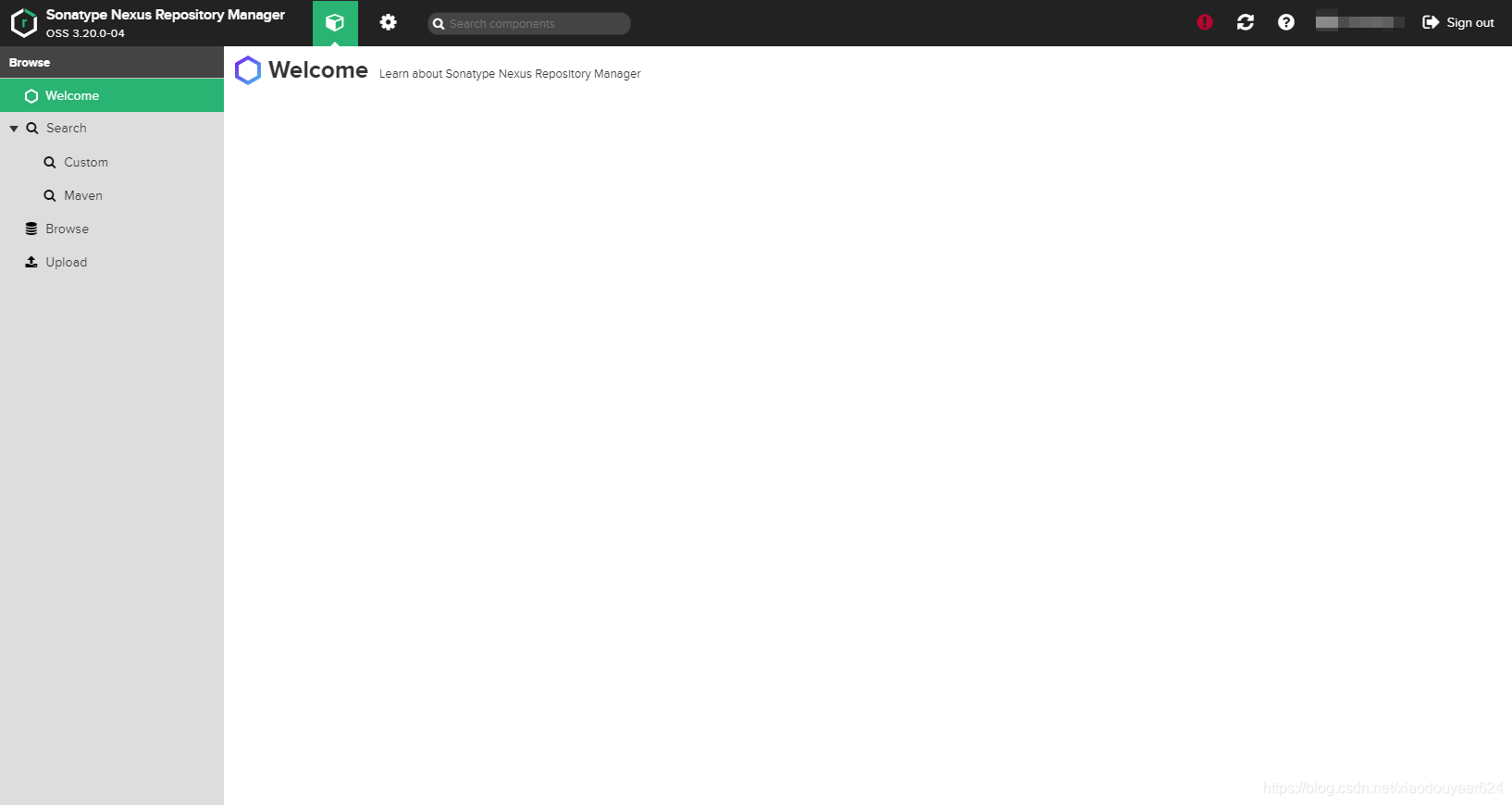 我这个是已经登录过了,如果没有登录,那么右上角的 Login In 进行登录,默认账户是admin,密码在{NexusBasePath}\nexus-3.20.0-04\sonatype-work\nexus3 下的admin.password 文件中。
