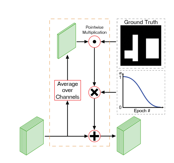 在YOLO的网络中加入这样的辅助激发层(AE)。 它根据ground truth的位置, 在原有特征图上激发对应位置(实质也是attention)。EA层具体如下: