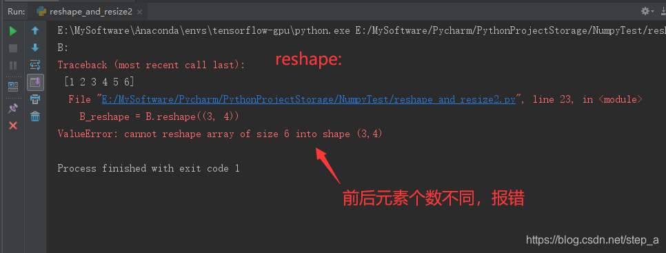 reshape 要求reshape前后元素个数相同,否则会报错,无法运行。