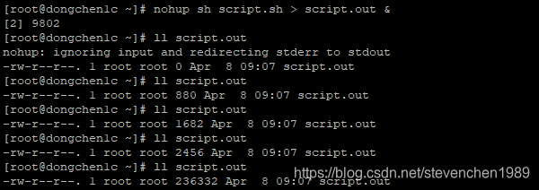 使脚本在后台中保持运行,哪怕用户登出了系统,命令的运行时状态将不会被终止。
