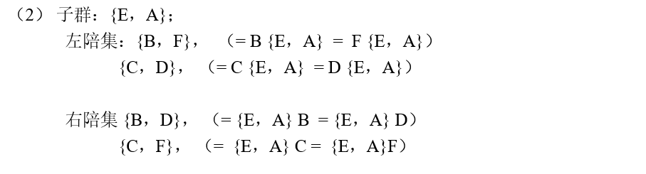 (2) 给出子群{A,E} 计算左陪集和右陪集