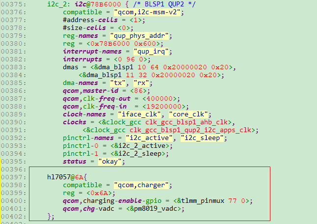 - 获取PMIC端对电池的电压采集的节点,使用qpnp-get-vadc将pmic的电压采集pin脚的地址传递给充电IC的vadc_dev的成员变量。