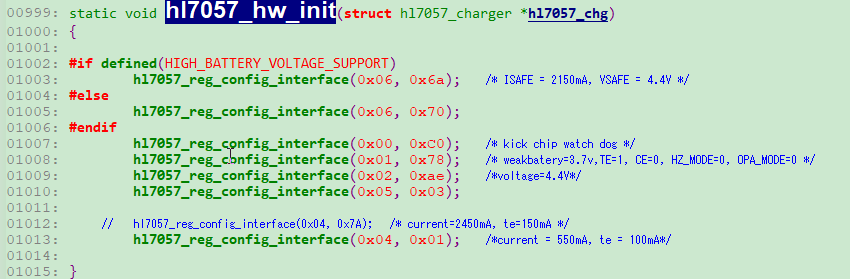 这里主要是针对充电IC的硬件特性,进行相关的功能的寄存器的设定工作,确保芯片能正常工作。