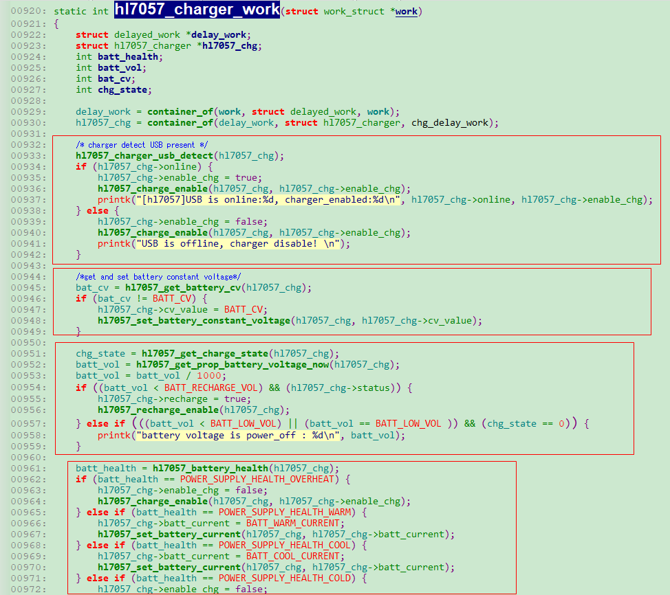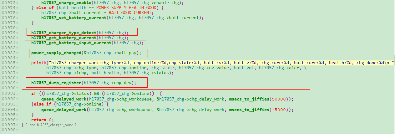 - dump寄存器的值,以便调试人员从log中查看充电IC的实时状态;