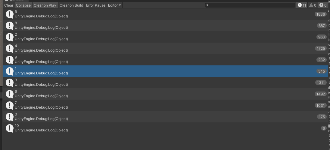 for (var _i = 0; _i < 10000; _i++){Debug.Log(GetCentre()/10);}
