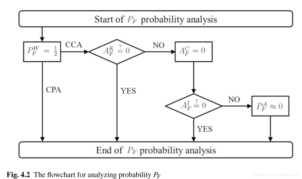 根据这几个概率分析,我们可以得到CPA CCA模型下,错误挑战密文如何分析的流程图。
