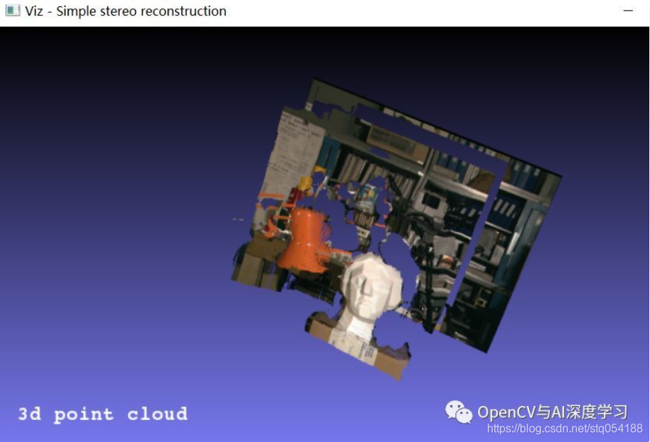 ① .xyz格式的三维点云一般我用OpenCV生成,显示使用VTK库,需要自己编译,然后用OpenCV viz模块显示,介绍https://blog.csdn.net/stq054188/article/details/104799702, 下面是效果:
