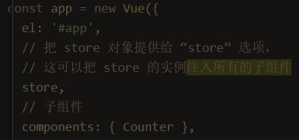 4 也可以直接注入每个子组件:哦! QAQ app.vue吧 通过在根实例中注册 store 选项,该 store 实例会注入到根组件下的所有子组件中