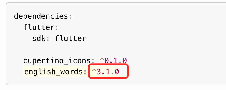 引入english_words: ^3.1.0 后,命令行输入 flutter packages get.