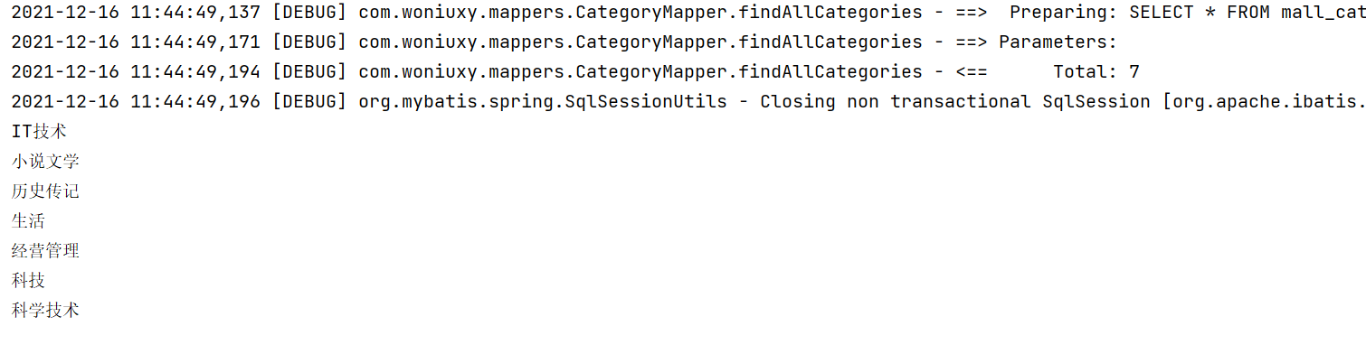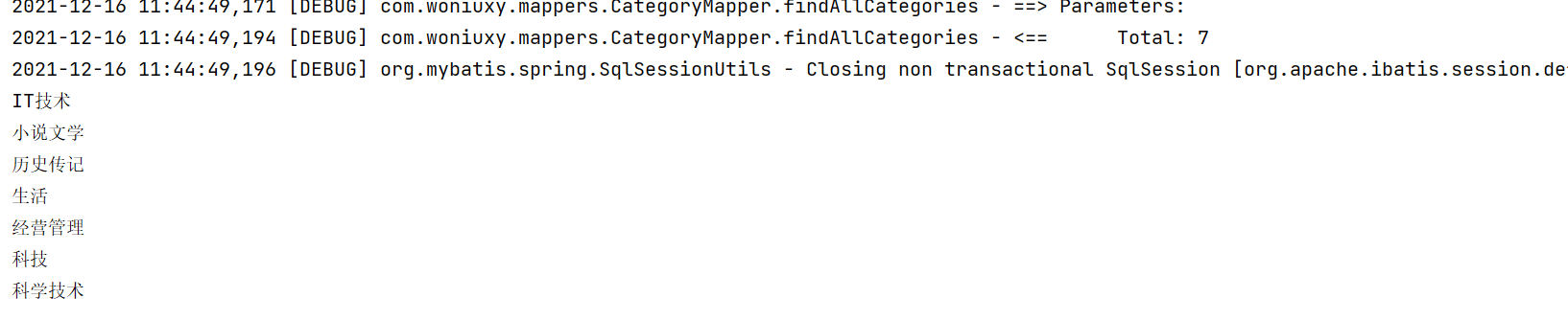 import org.springframework.context.support.ClassPathXmlApplicationContext;import java.util.List;public class TestCategoryService {private static CategoryService categoryService = new CategoryServiceImpl();public static void main(String[] args) {testFindAllCategories();}private static void testFindAllCategories() {ApplicationContext ac = new ClassPathXmlApplicationContext("classpath:bean.xml");CategoryService categoryService = (CategoryServiceImpl)ac.getBean("categoryService");List<Category> categories = categoryService.findAllCategories();for(Category category : categories){System.out.println(category.getName());}}