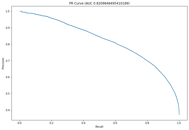 plt.title('PR Curve (AUC {})'.format(auc(re, pr)))
