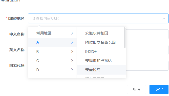 用cascader的主要目的是因为国家太多了,根据国家的首字母。