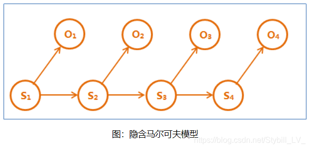 在这个马尔可夫链中,四个圈表示四个状态,每条边表示一个可能的状态转换,边上的权值是转移概率。隐含马尔可夫链是上述马尔可夫链的一个扩展:任一时刻t的状态St是不可见的。所以观察者没法通过观察到一个状态序列S1,S2,S3,…,ST来推测转移概率等参数。但是隐含马尔可夫模型在每个时刻t会输出一个符号Ot,而且Ot和St相关且仅和St相关。这称为独立输出假设。隐含马尔可夫模型的结构如下图,其中隐含的状态S1,S2,S3,…是一个典型的马尔可夫链。鲍姆把这种模型称为“隐含”马尔可夫模型。
