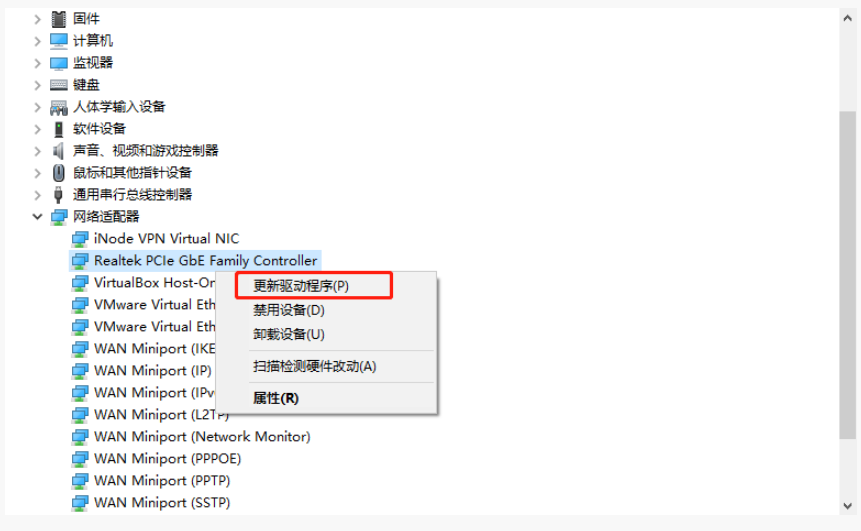 2、选择网络适配器,找到现在的wifi驱动,点击更新。