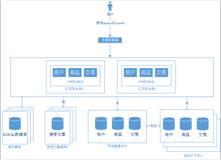 由于用户量的增加,单台服务器已经无法满足请求,开始使用应用服务器集群: