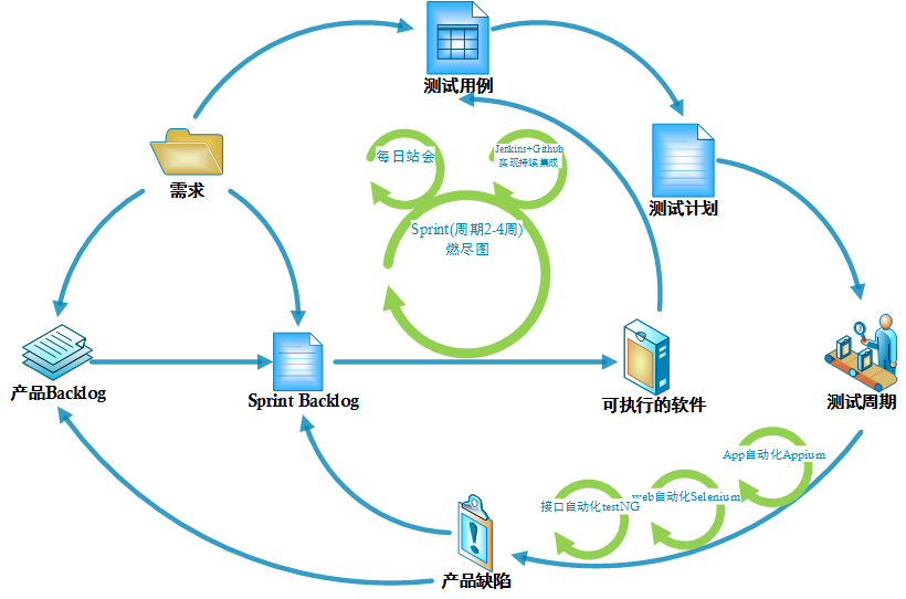 由于互联网平台的需求响应快,对应敏捷开发的敏捷测试也发展起来了: