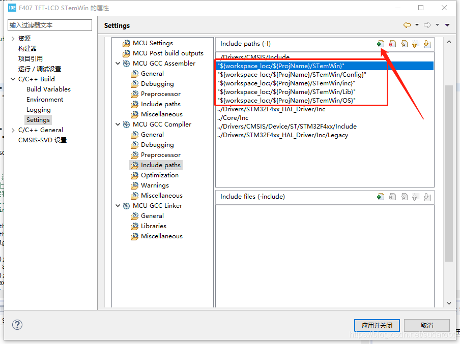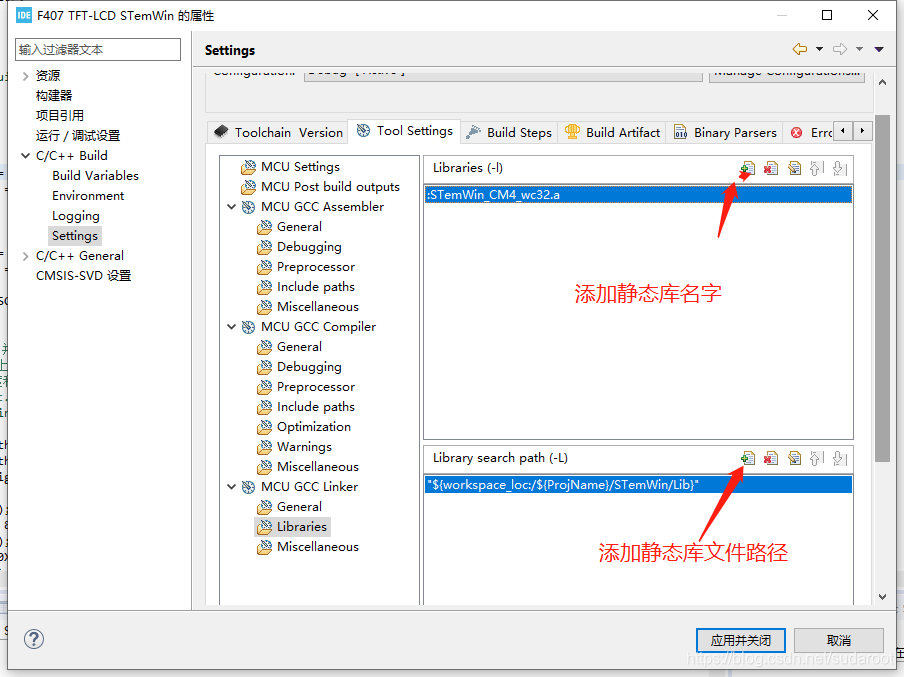 2、打开工程中的STemWin文件夹中Lib,我选择使用STemWin_CM4_wc32.a,其他的文件删除。若出错就选STemWin_CM4_wc16.a,和编译器有关。