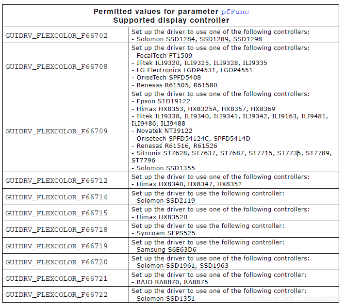 GUIDRV_FLEXCOLOR_F66708:表示对应手册上自己使用的LCD MCU一致。如下图。