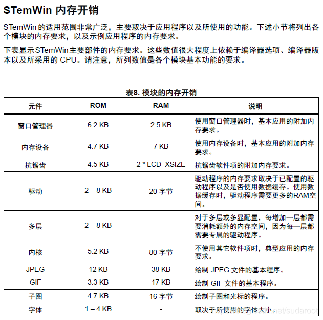 关于STemWin内部缓存大小分配问题,主要取决程序使用了内部什么功能而定。