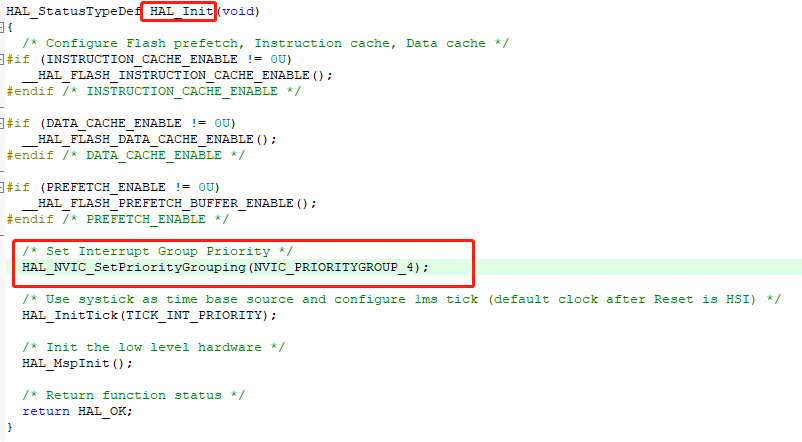 一般用STM32CubeMX软件生成的代码,设置NVIC中断组的函数HAL_NVIC_SetPriorityGrouping();