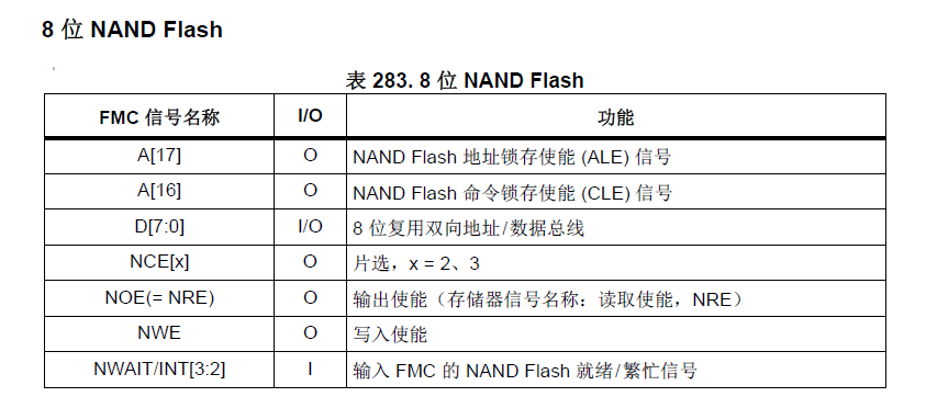 先看一下《AN4761 Application note Using STM32L476/486 FSMC peripheral to drive external memories》手册的4 Interfacing an 8-bit NAND Flash memory章节(手册可以在意法半导体STM32/STM8技术社区 - 提供最新的ST资讯和技术交流搜索AN4761找到)