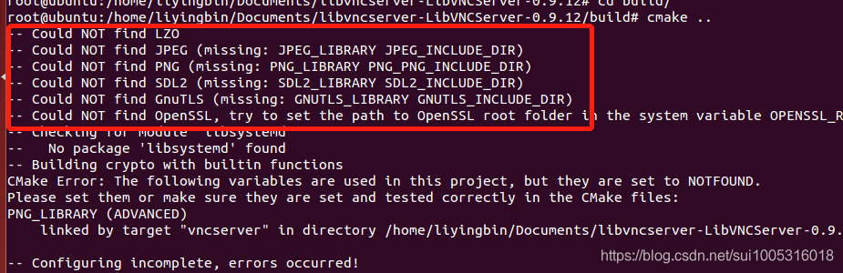 问题点:编译libvnc 执行“cmake build .”操作时提示以下问题点: