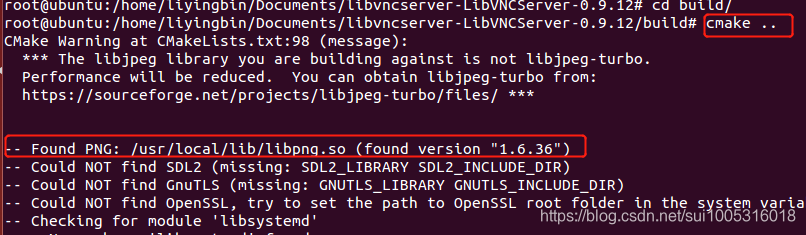安装后重新执行“cmake ..”,已经已经找到了libpng.so