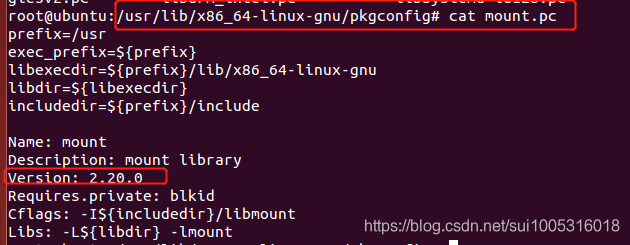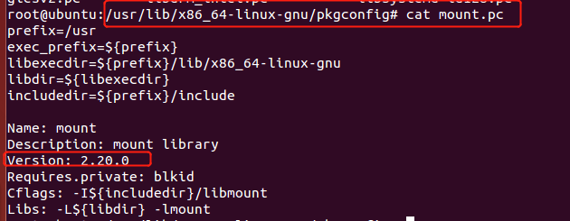 但/usr/lib/x86_64-linux-gnu/pkgconfig/mount.pc 还提示是2.20.0 版本;