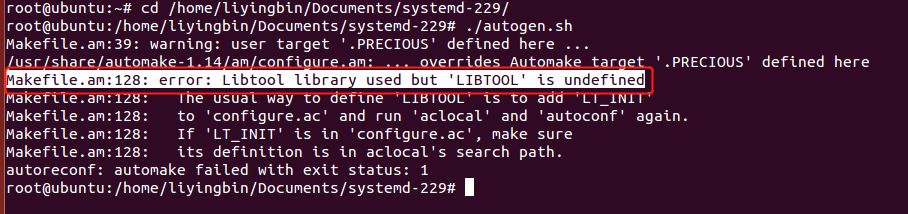 问题点:“systemd 229”执行configure操作时,提示错误: