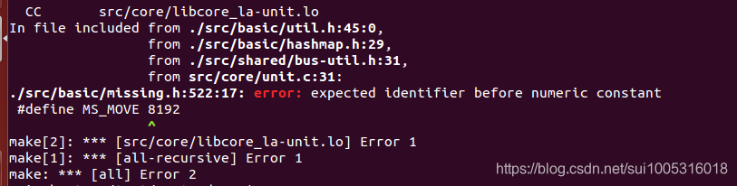 当以上修改完成后自行make 提示以下错误: