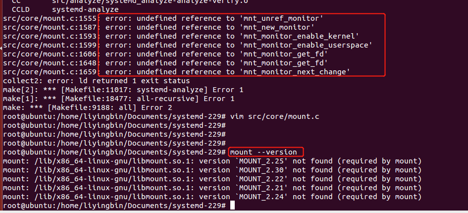 问题点:“systemd 229”执行make操作时,提示错误