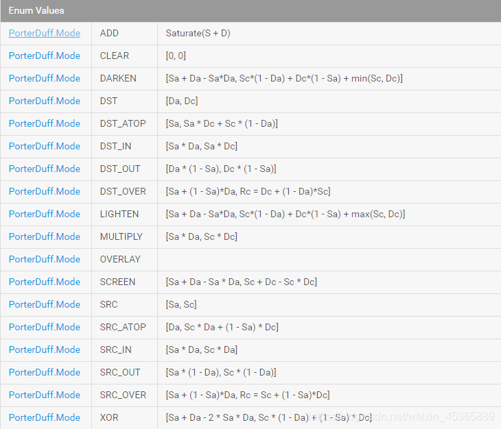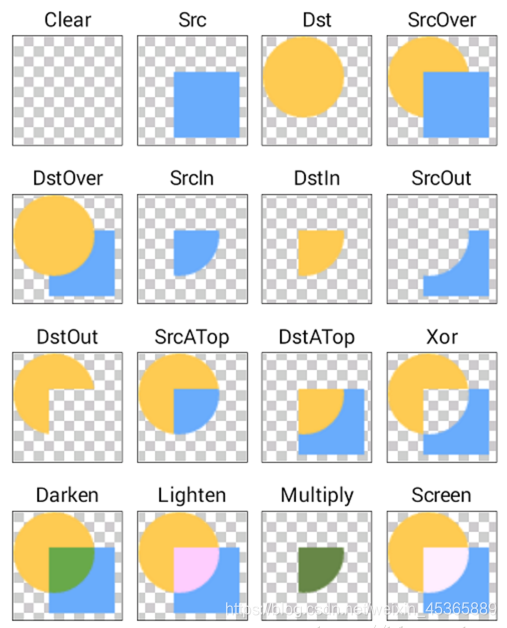 相信了解过xfermode的人应该都看过谷歌官方的这张图但是当你自己去使用的时候会发现结果却是不同的,让我们来看看官方的代码