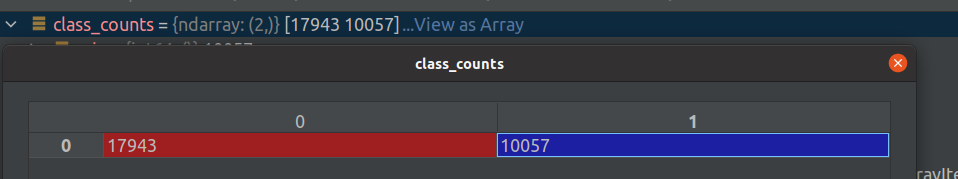 图文结合,形象,在这里用作数0和1的数量,也就是,female和male的图片张数,也就是17943和10057