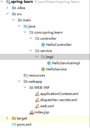 <!--Spring applicationContext.xml--> 无<!--SpringMvc dispatcher-servlet.xml--><context:component-scan base-package="com.spring.learn"></context:component-scan>