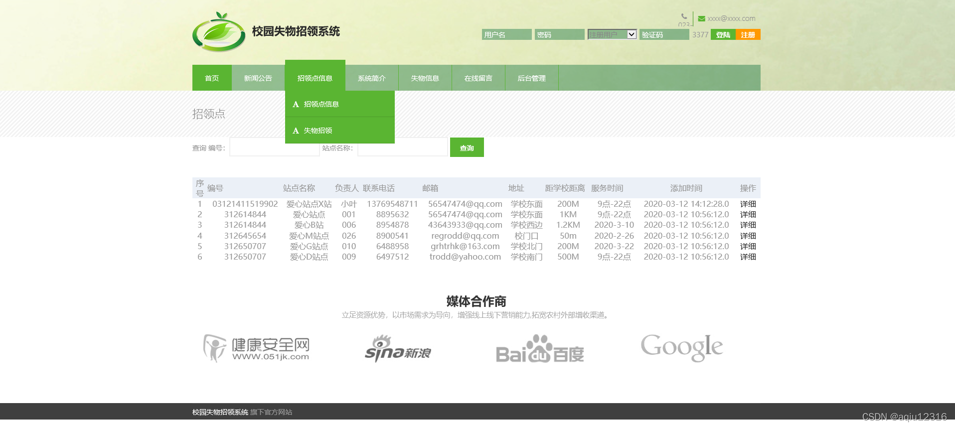 (2)招领点信息:主要实现招领点信息查看,失物招领功能。
