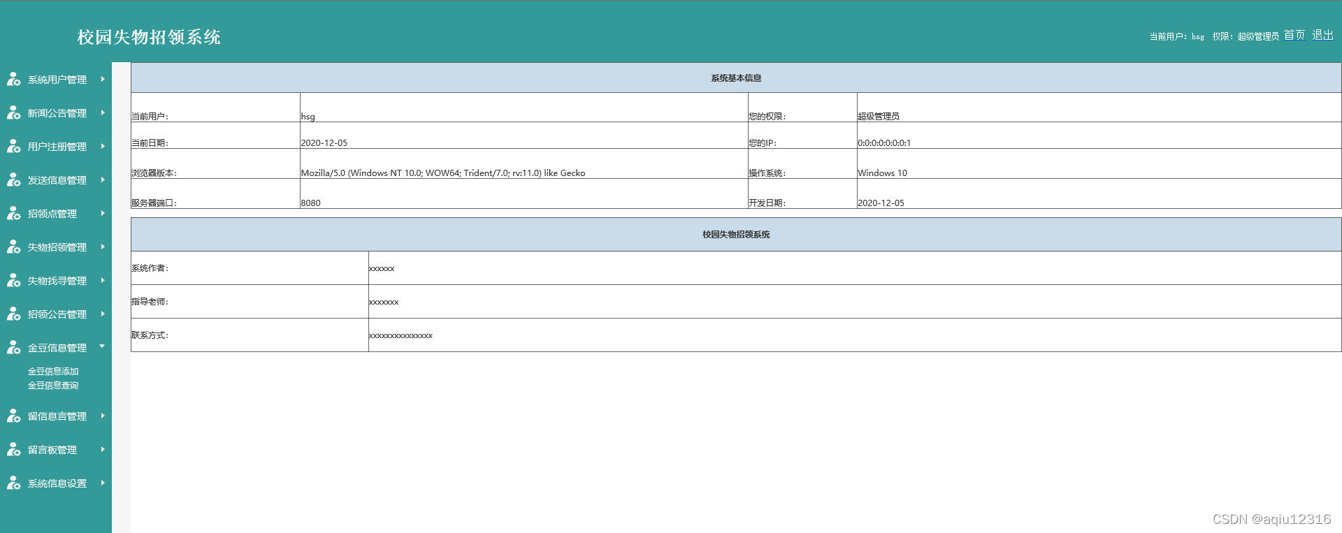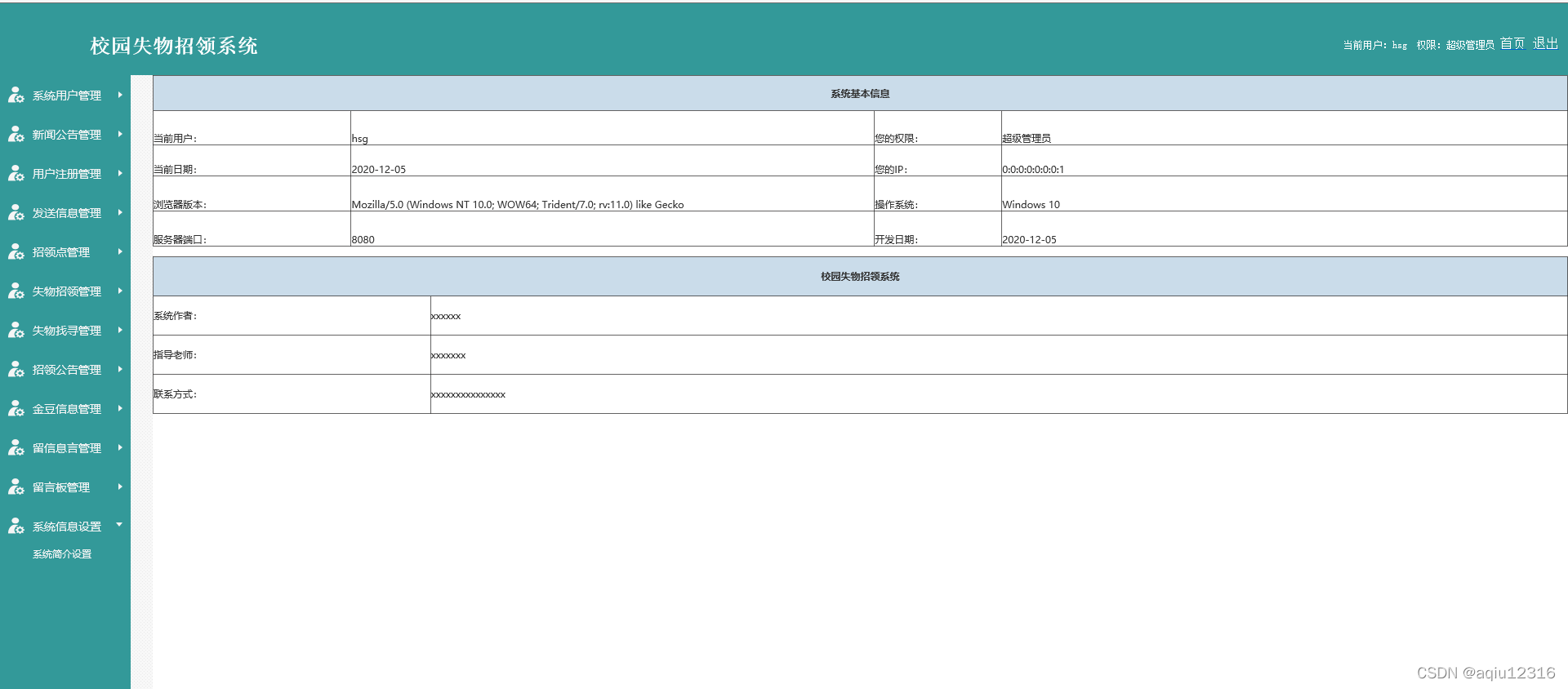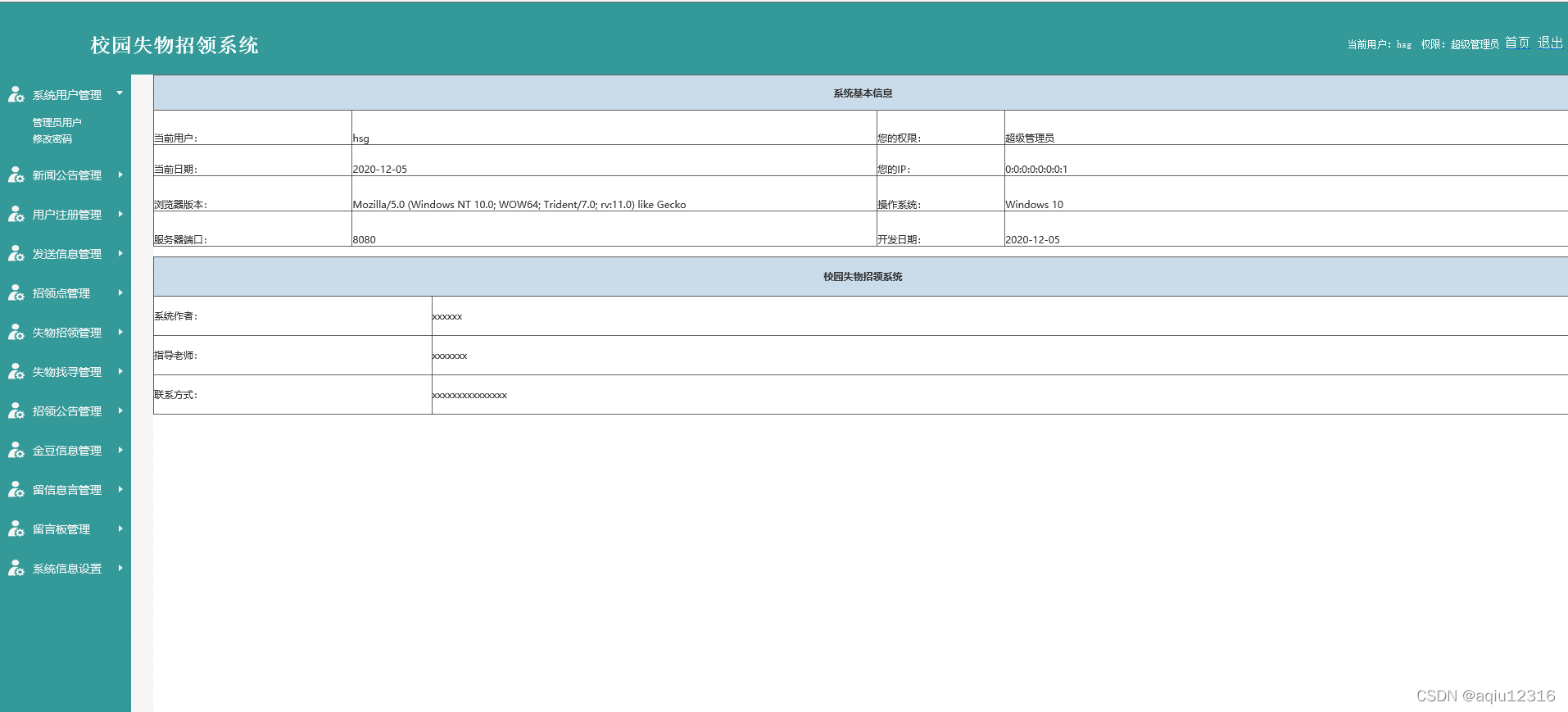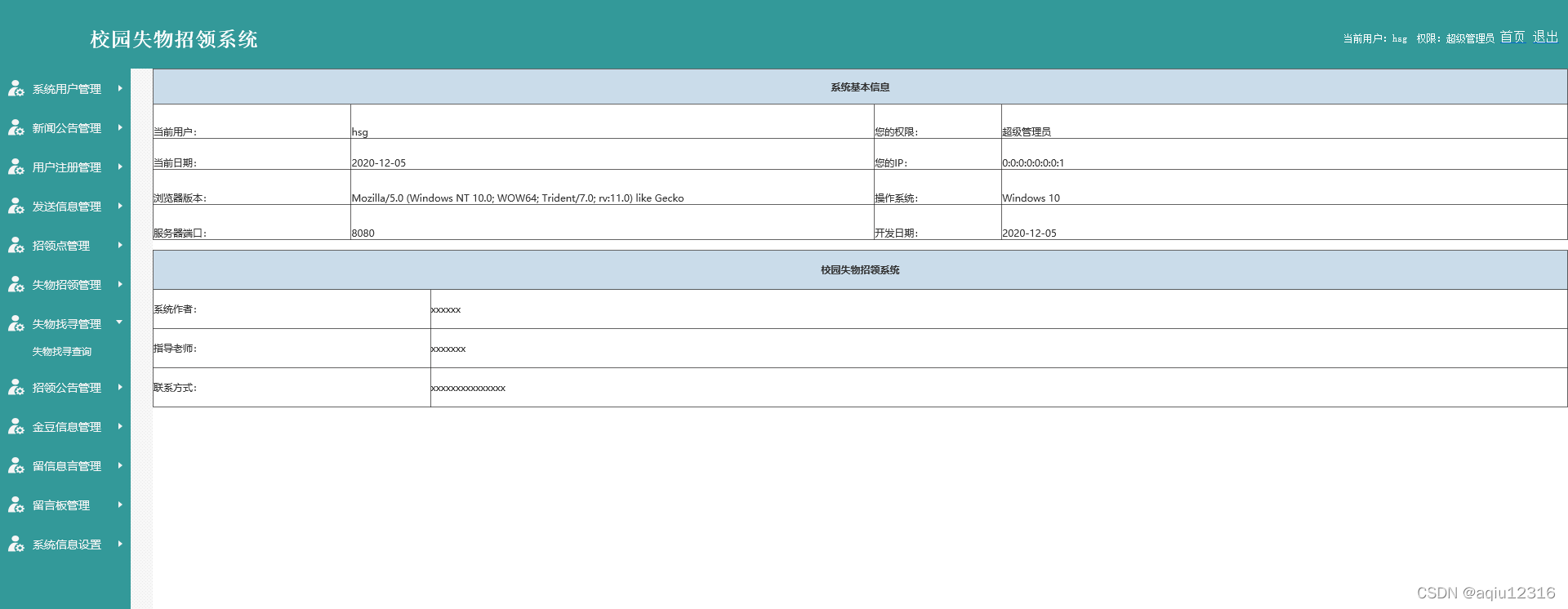(2)新闻公告管理:主要实现新闻公告信息添加和查看,以及招领公告信息的添加和查看。