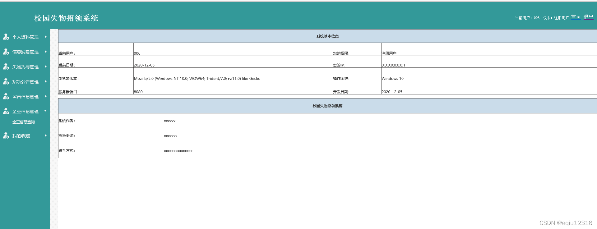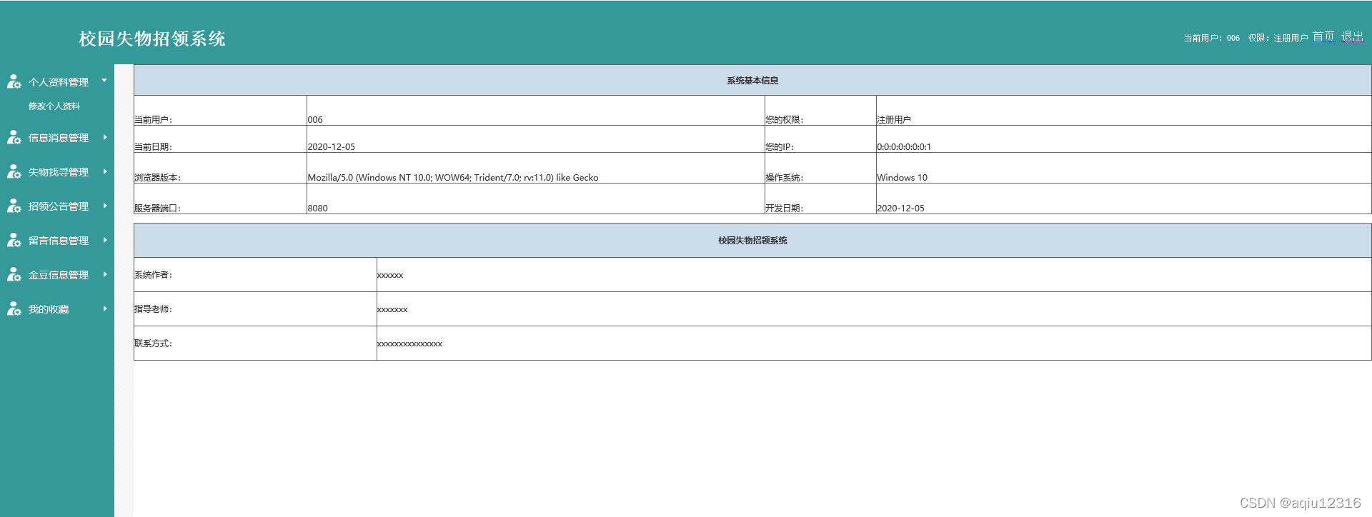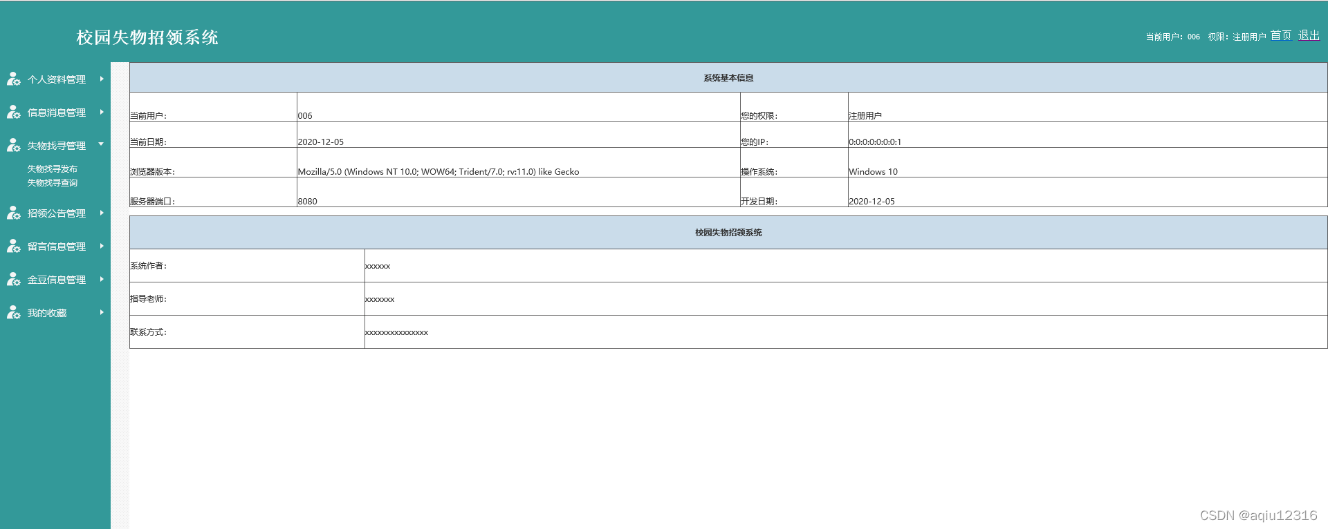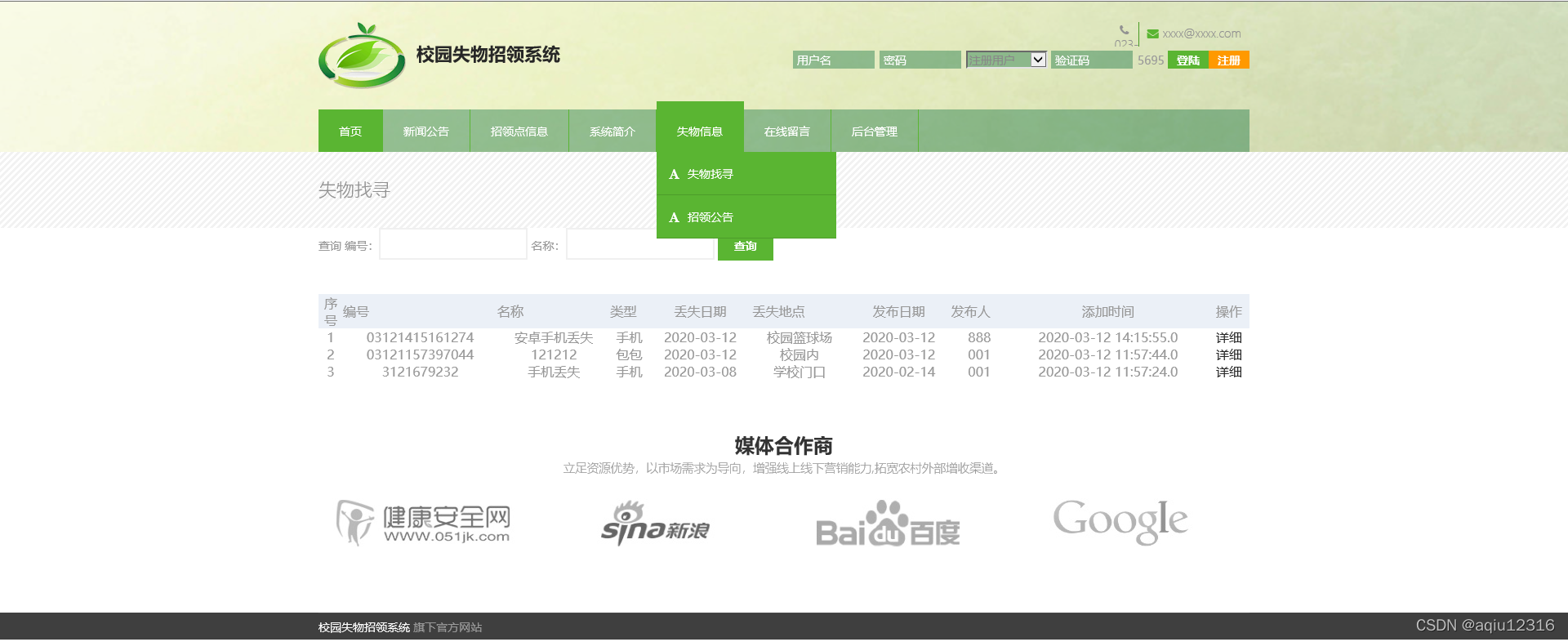 (6)失物招领管理:该模块只要实现失物招领信息的添加和查看功能。