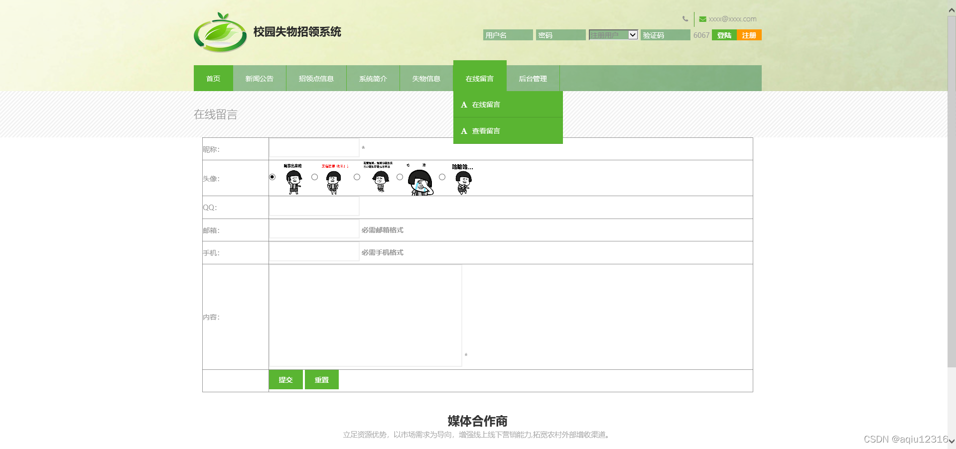 (5)在线留言:主要实现在线留言和查看留言功能。