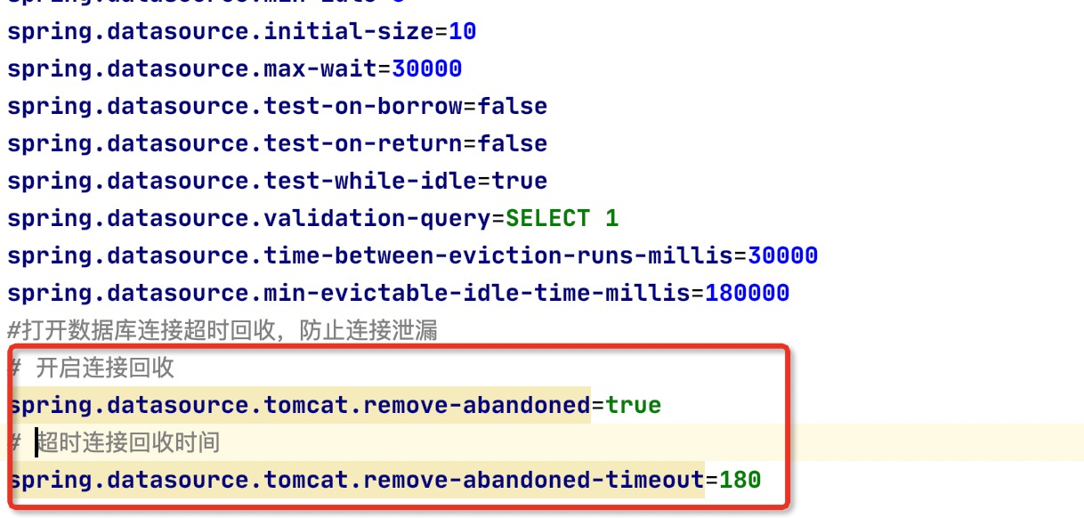 增加数据库连接超时回收功能,更上一层保险,防止连接泄漏。