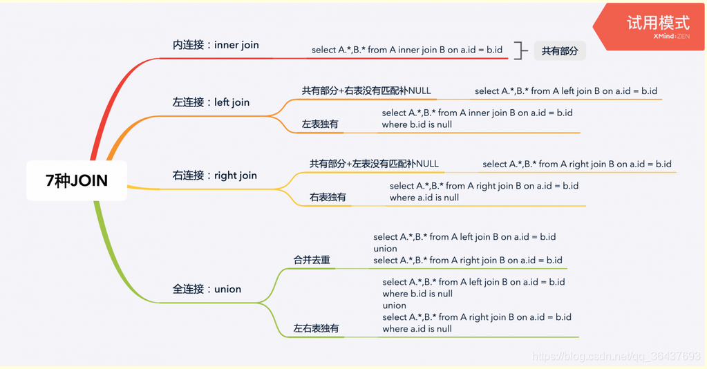 友情提示:mysql的join没有全表的full out join,只能使用union,这个关键字会将重复的内容只取一份