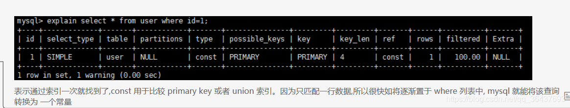 表示使用索引,如果只有 Using index,说明他没有查询到数据表,只用索引表就完成了这个查询,这个叫覆盖索引。如果同时出现Using where,代表使用索引来查找读取记录, 也是可以用到索引的,但是需要查询到数据表。