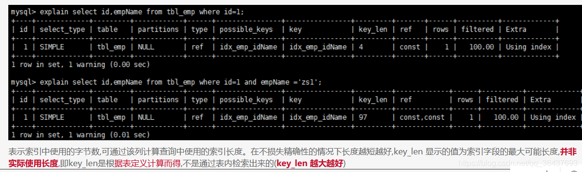 计算索引长度,在后面分析那些字段走索引,字段走的索引越多,该长度越长