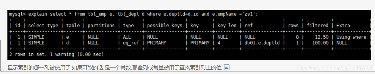 作用:显示可能应用在这张表的索引,一个或者多个,查询到该字段设计到的索引,都会被列出。