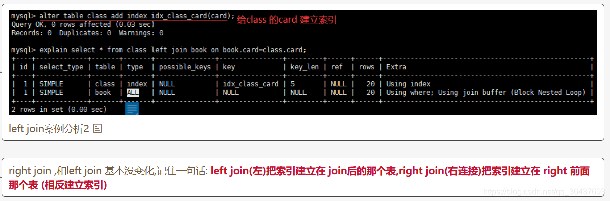 2、如果是右连接建立索引应该建立在right前面的那张表