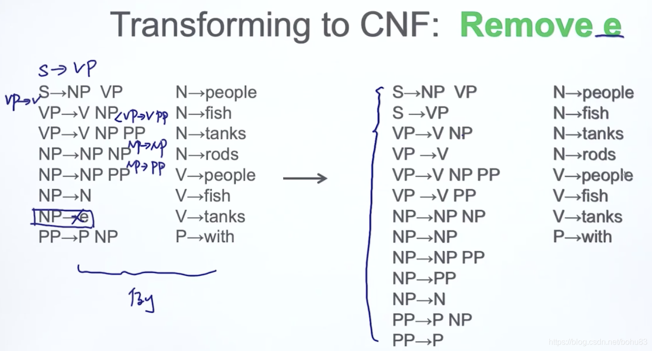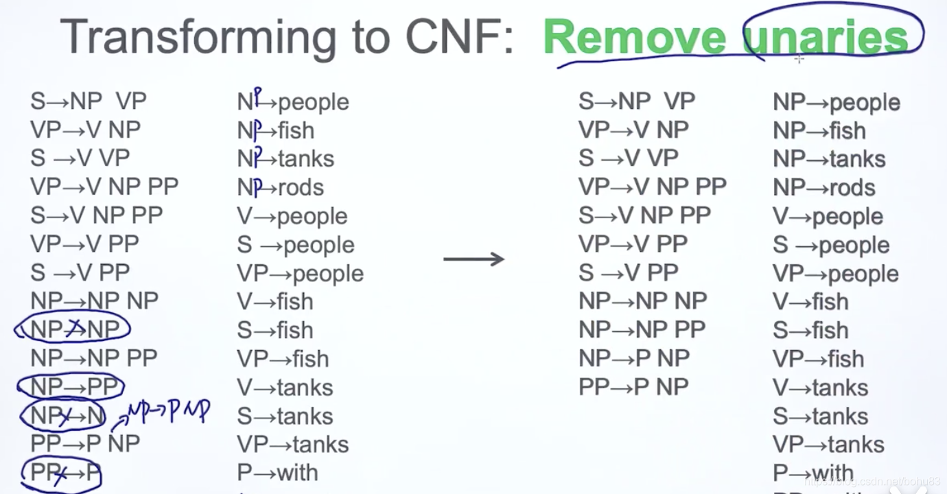 去掉只指向一个值(unaries)的规则,下面截图的例子S->VP