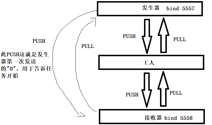 - 发生器的PUSH套接字将任务均匀地分配给工人。这就是所谓的负载均衡,以后还会详细介绍