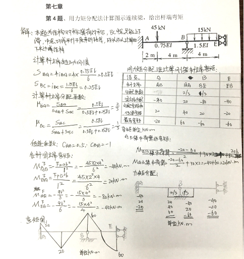 7-4 用力矩分配法计算图示连接梁,给出杆端弯矩: