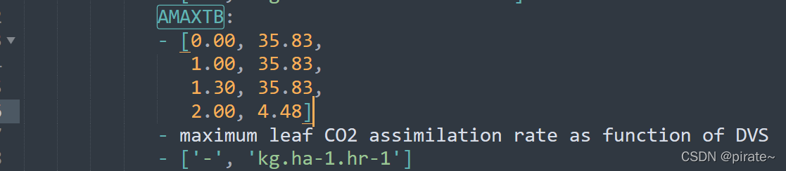 以 AMAXTB 为例,下图为官方示例的小麦作物参数文件